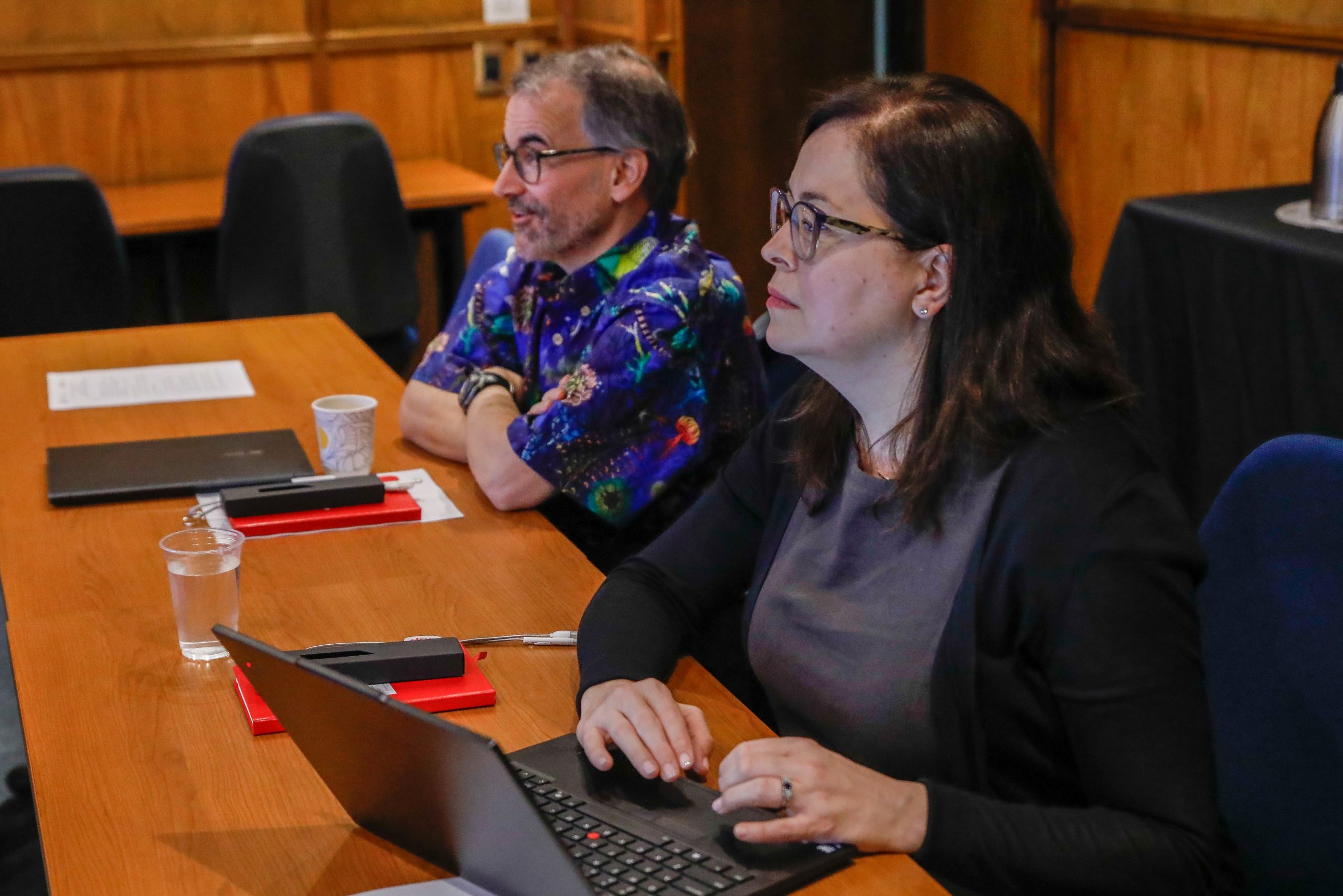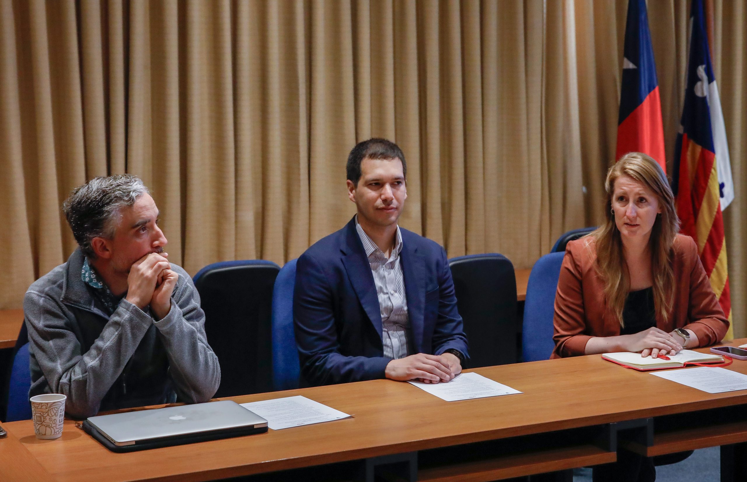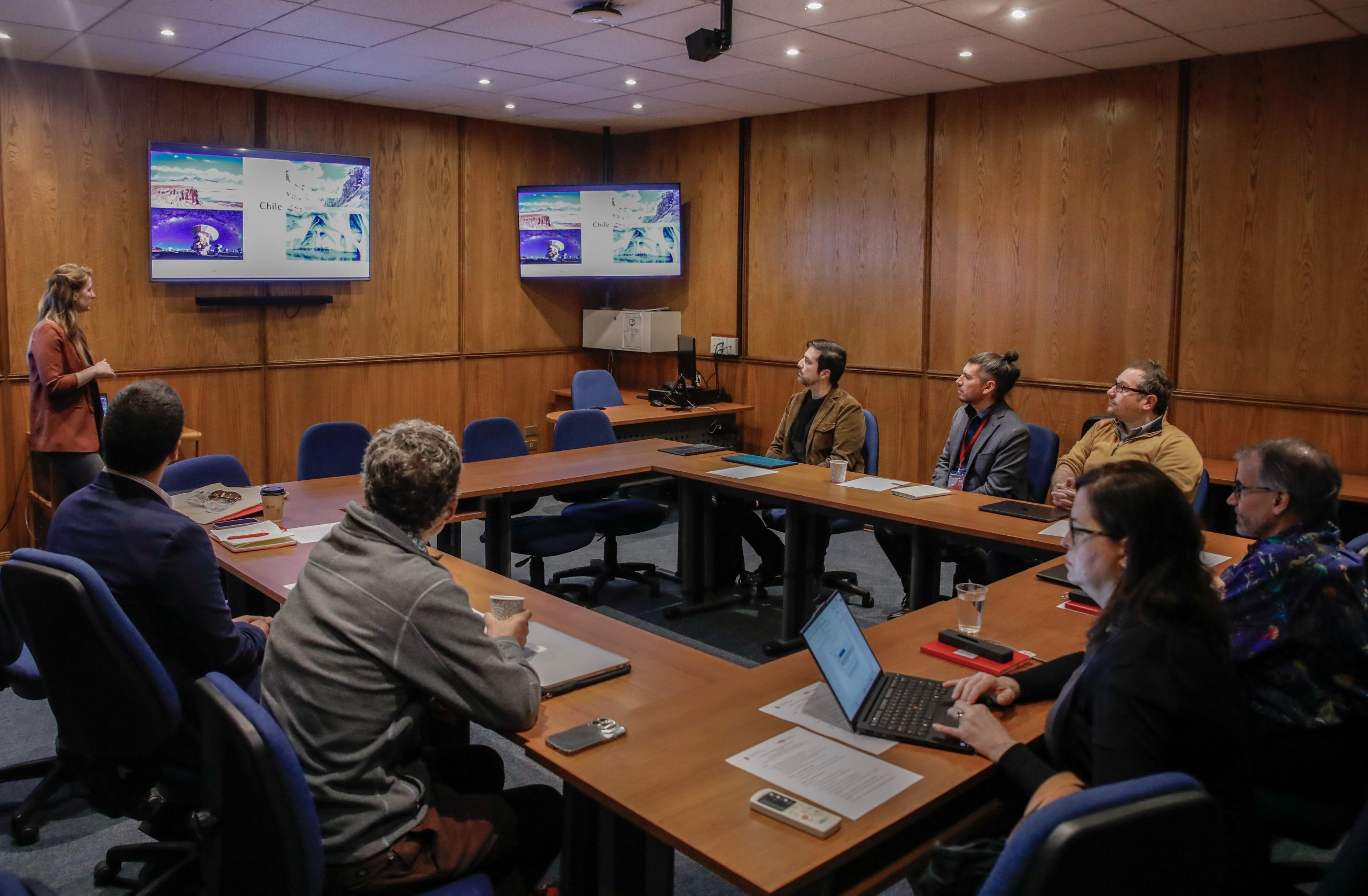 The meeting was led by Anoek van den Berg, Director General of International Relations, and Carlos Ahumada, International Cooperation Coordinator for the area. Also in attendance were José Luis Prieto, Director of the Institute of Astrophysical Studies; Roberto Lavín Serrano, Director of the Institute of Basic Sciences; Cristóbal Sarmiento, Professor at the School of Civil Industrial Engineering; Roberto Assef, Professor at the Institute of Astrophysical Studies; Manuel Gacitúa, Professor at the Faculty of Engineering and Sciences; and Álvaro Espejo, Professor at the School of Computer Science and Telecommunications.
